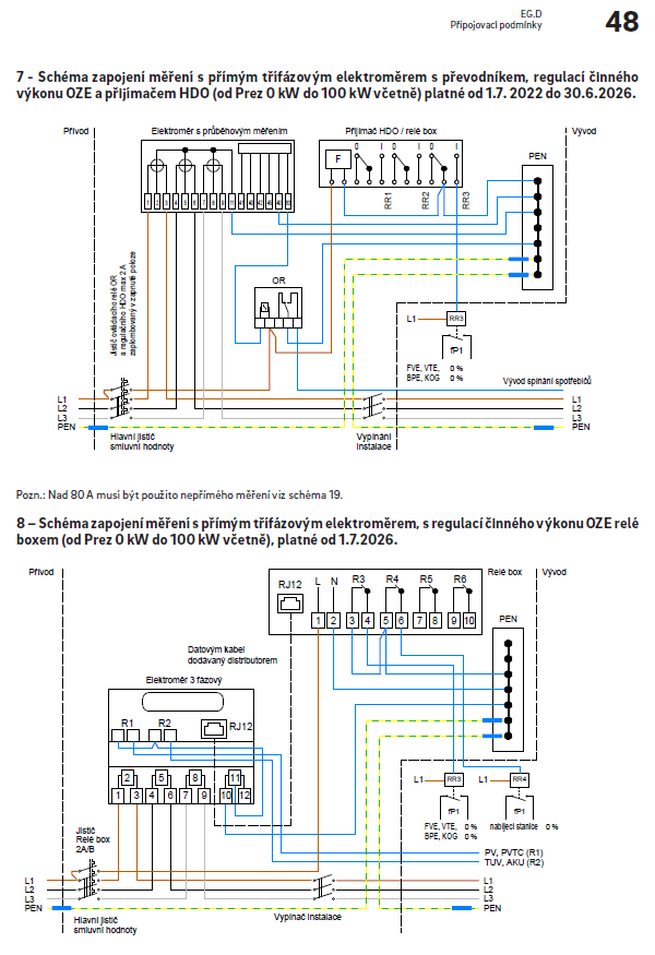 - Do 1.7.2026: Povinné schéma č. 7 (s pomocným relé OR)